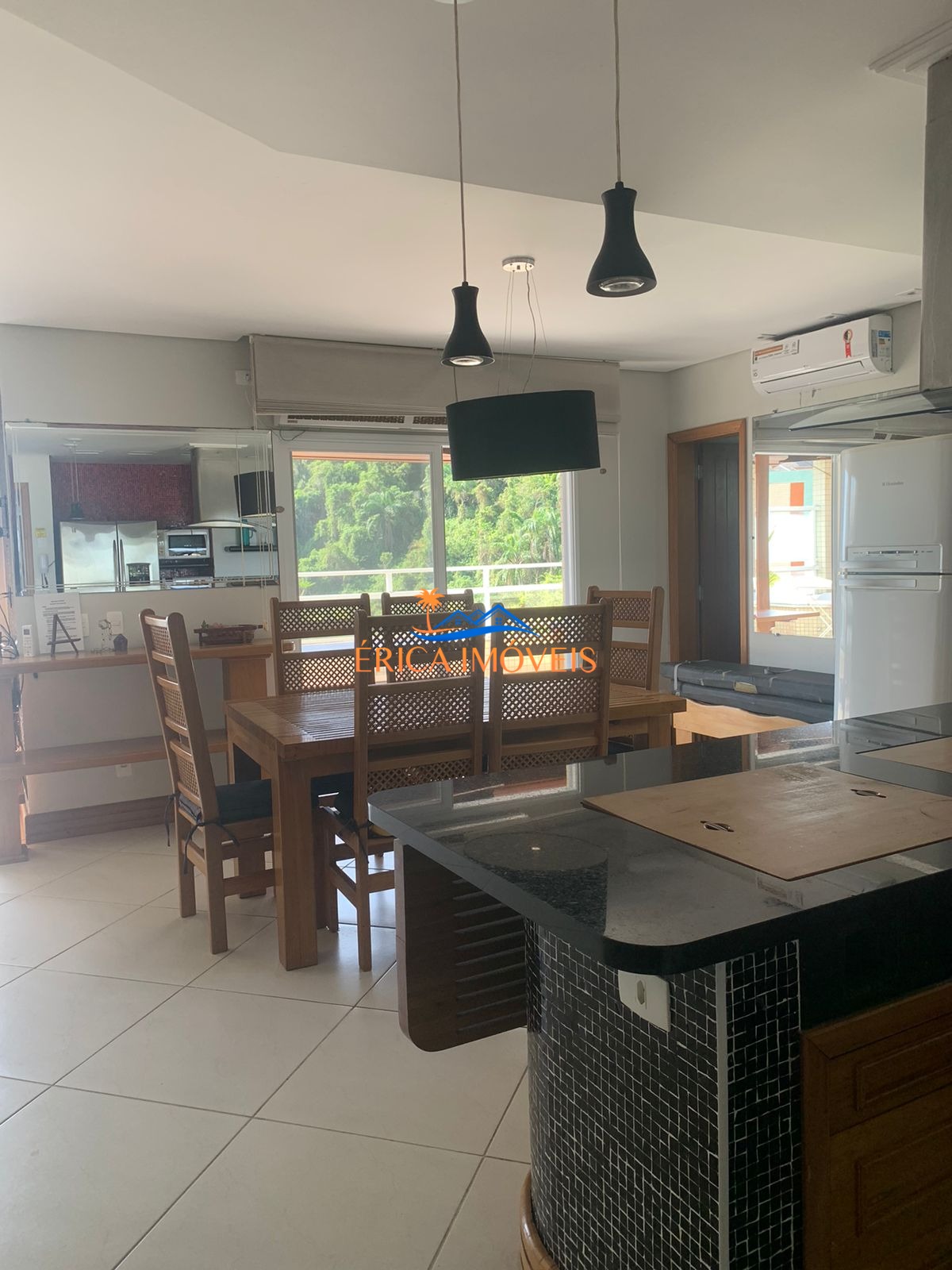 Sala de estar e jantar, Cozinha com vista para mata atlântica;